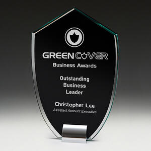 Glass trophies typically have a very slight green tinge, which can subtly affect the appearance of colour printing. In contrast, crystal trophies are completely clear.