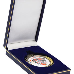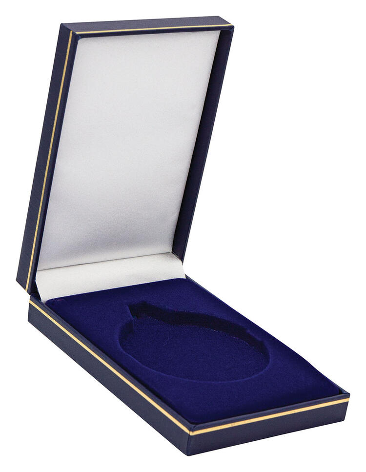 This keepsake medal case offers a refined way to store and showcase special moments of achievement. The rectangular box features a circular inset that frames your medal with distinction. Blue, gold, and white tones lend an elegant finish, making this sports medal holder a trusted choice for memorable recognition. Fits 70mm Medal