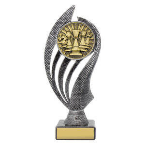 The Chess Husky Trophy combines an antique silver and gold resin design with a polished black marble base. A stylish and durable award that balances tradition with modern appeal, suitable for tournaments and schools alike.