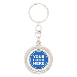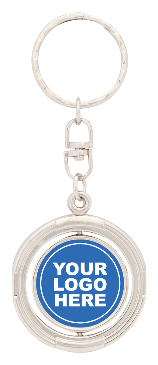 This sleek silver metal keychain features a unique spinning centre designed to showcase your custom 25mm printed logo or design. Crafted from durable metal with a polished finish, its both practical and stylish - ideal for clubs, businesses, events, or promotional giveaways. A high quality keepsake that combines movement, shine, and personalisation in one compact accessory.