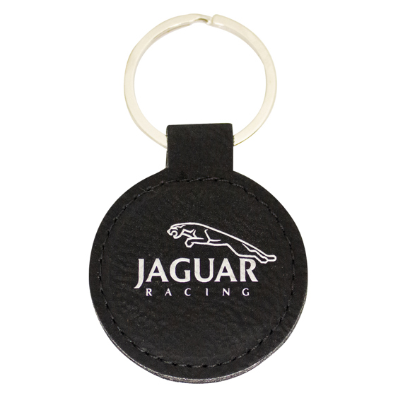 Crafted from premium black leatherette, this round keyring provides a sleek surface for precision laser engraving. The contrast of white engraving against the dark finish creates a modern and professional look, making it ideal for branded gifts, events, or recognition tokens.