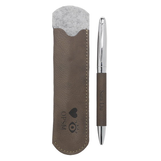 A range of engravable leatherette promotional and gift items presents a variety of options to recognise the efforts and achievements of your participants or employees. The leatherette Pen Gift Set represents a nice, usable award for your recipients and allows for engraving on the pen and case provided.