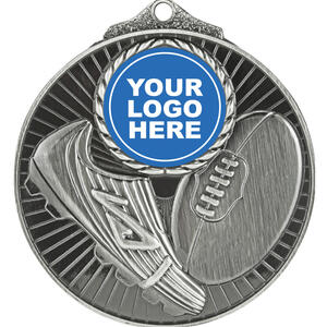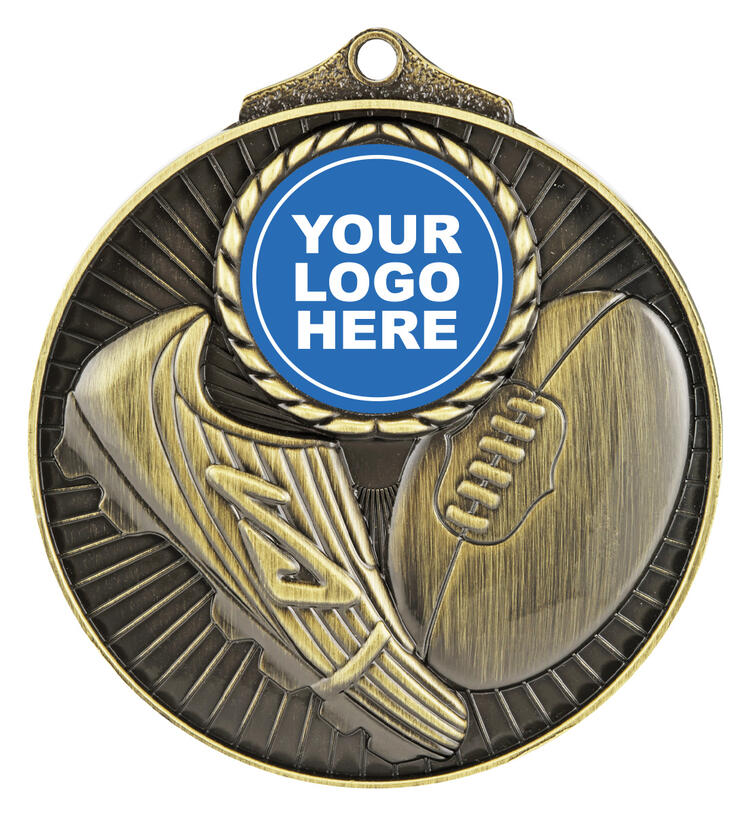 This aussie rules football medal combines classic design and lasting quality in a circular metal form. Showcasing a football and boot motif, it is available in your choice of gold or silver for an elegant, professional finish. The 25mm centre insert space allows for customisation, making it a reliable and celebrated choice for recognising standout achievement in Aussie Rules Football.