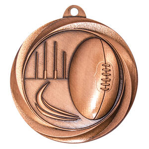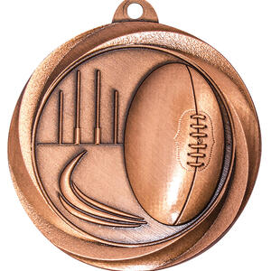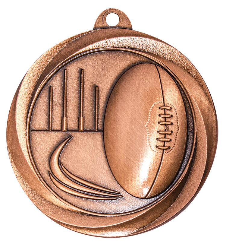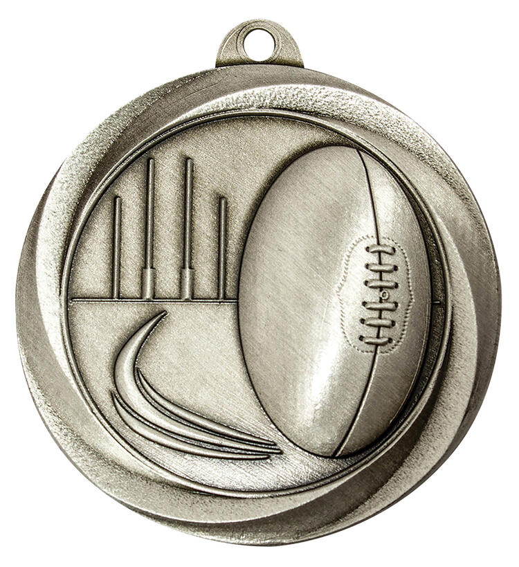 Celebrate achievement on the field with this expertly crafted footy medal, part of the trusted Econo Medal Series. Featuring a detailed football and goalposts design, each 50mm circular medal is available in durable gold, silver, or bronze finishes. These footy medals are ideal for recognising outstanding performance in Aussie Rules.