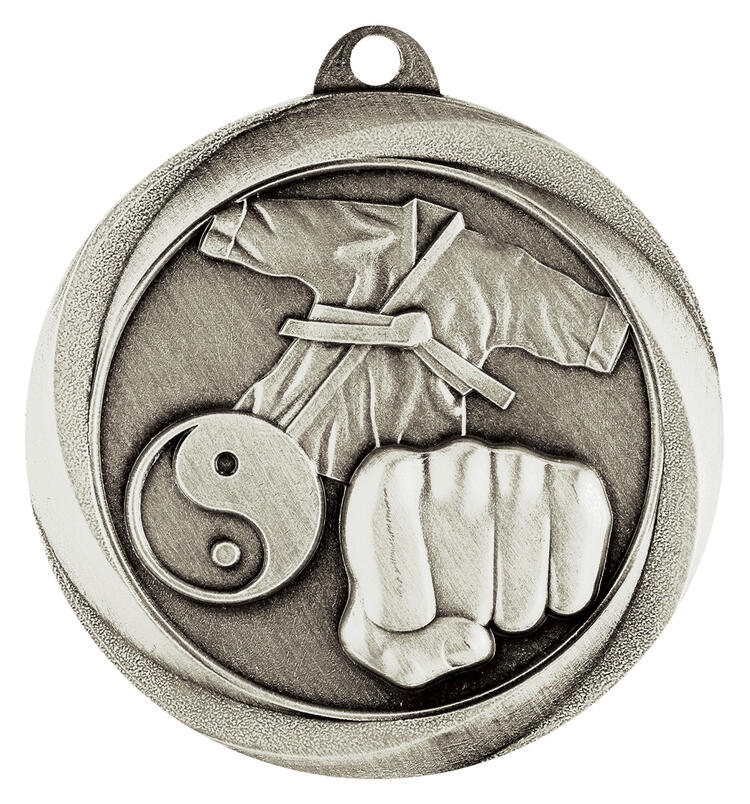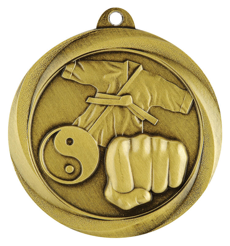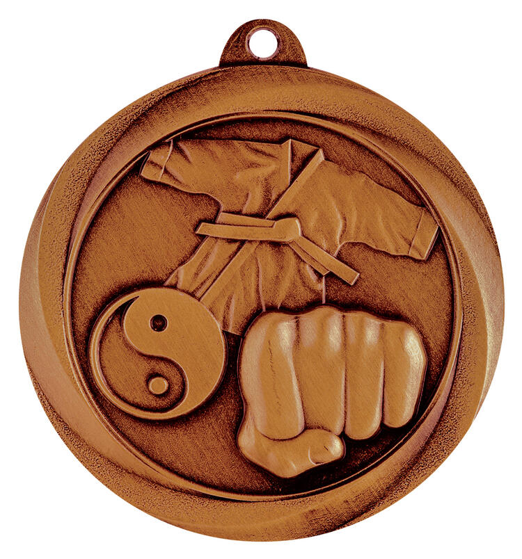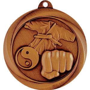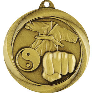 Celebrate martial arts achievement with a classic martial arts medal crafted from durable metal and finished in your choice of bronze, silver, or gold. This circular award features a martial arts uniform, a poised fist, and a yin yang symbol, capturing the essence of discipline and balance. A trusted choice for recognising dedication and skill in martial arts competitions or events.