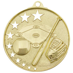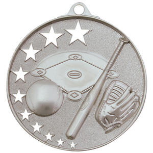 Celebrate sporting achievement with this expertly crafted baseball medal, available in elegant silver, bronze, or gold finishes. The metal circular design showcases a baseball, bat, glove, and field, accented by striking star cutouts for a memorable presentation. A trusted choice for recognising excellence in baseball, this medal offers a durable and professional symbol of accomplishment.