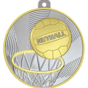 Designed for lasting recognition, this circular metal medal features a detailed netball, hoop, and net, making it a standout choice for netball medals. Available in a striking silver and gold finish, its precision crafted design and sturdy loop offer both elegant presentation and practical use.