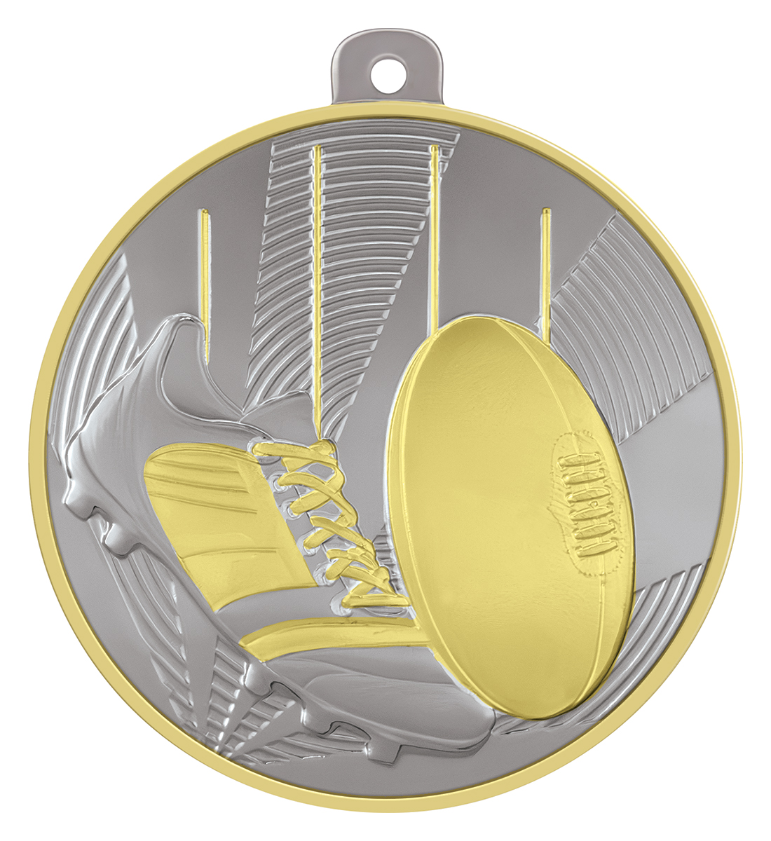 Celebrate Aussie Rules achievement with these expertly crafted sports medals, available in an elegant gold and silver finish. The circular metal design showcases a detailed football and boot, symbolising dedication and skill on the field. Each medal is thoughtfully constructed with a secure loop for easy attachment, making it a memorable choice for recognising sporting excellence.