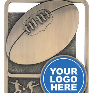 Celebrate outstanding achievement on the field with this distinctive afl medal, crafted in durable metal and available in gold, silver, or antique silver finishes. Its rectangular shape with rounded edges features bold Aussie Rules football imagery and dynamic embossed player figures. The large 25mm centre offers space for a fully custom logo, making this medal a memorable and personalised recognition piece.