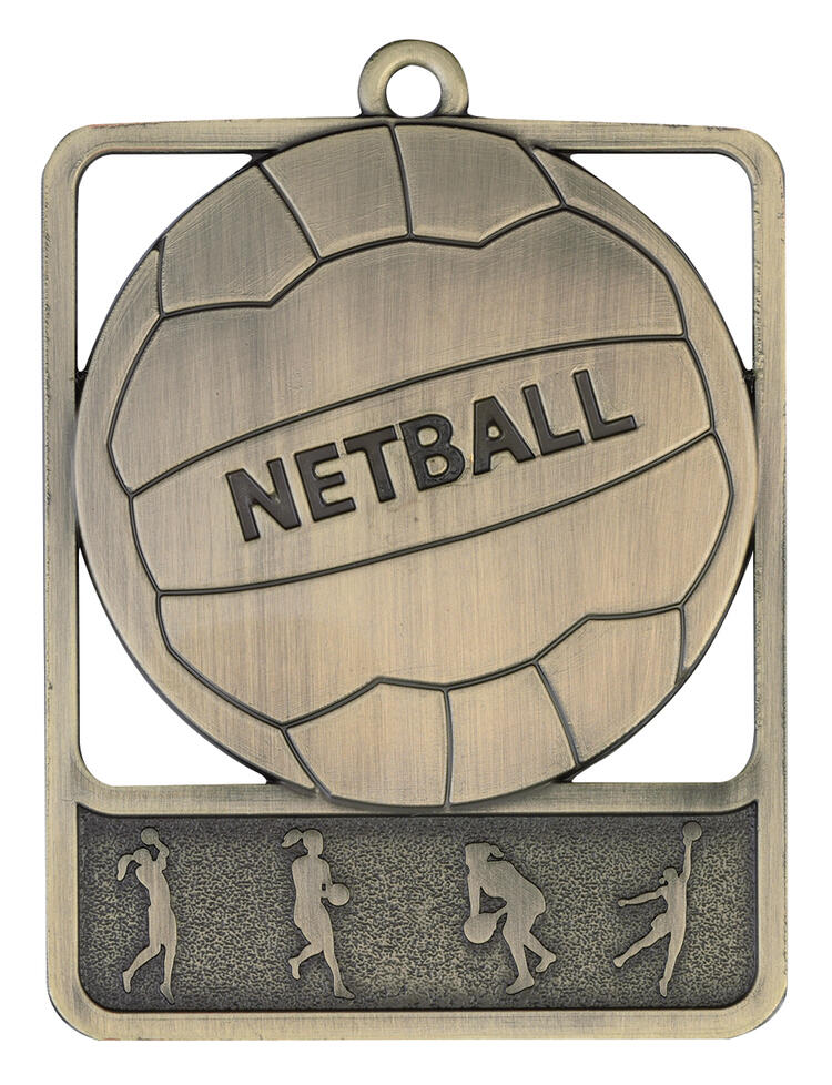 Crafted for memorable netball awards, this medal features a bold netball design set within a rectangular body. Made from durable metal in distinguished gold, silver, or bronze finishes, its dynamic silhouettes of players in action pay tribute to team spirit and achievement. An elegant choice for celebrating excellence on the netball court.