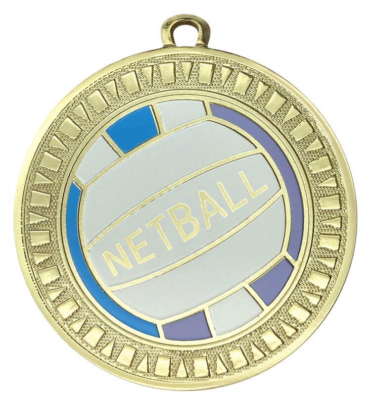 Celebrate sporting achievement with a medal crafted for standout recognition in netball awards. The Netball Spark Medal's circular metal design is enhanced with a decorative border and a dynamic netball motif, brought to life in gold, blue, white, and purple. Its durable build and vibrant colours make it a memorable choice for rewarding dedication and skill on the court.