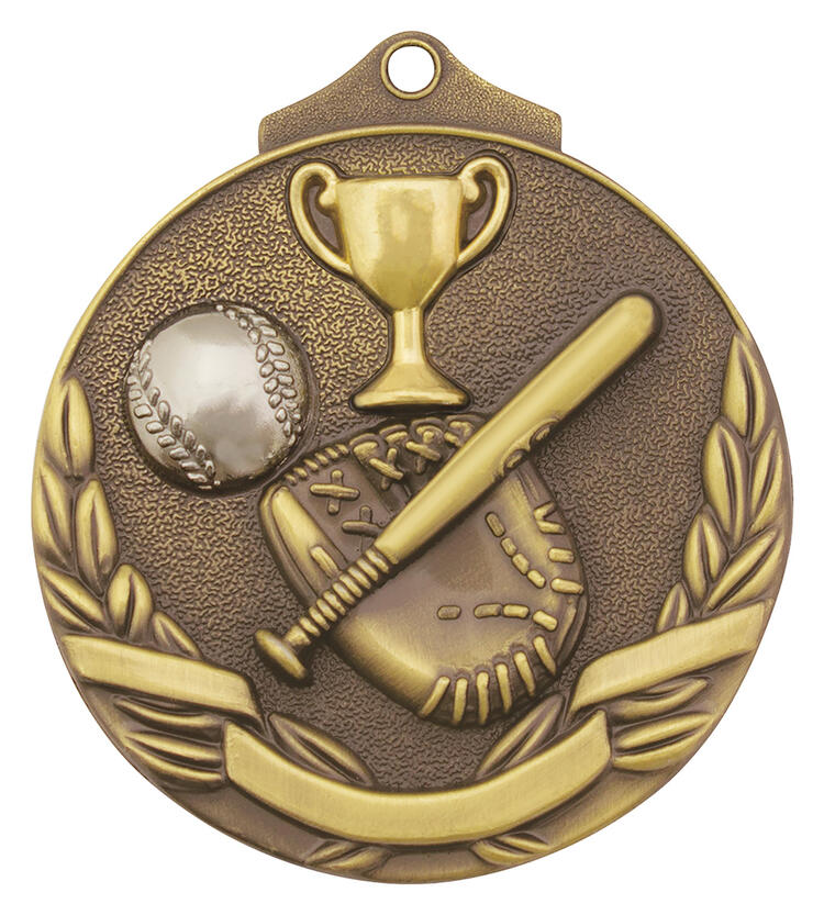 Celebrate achievement on the diamond with this baseball medal, expertly crafted in durable metal with a gold finish. Its circular design features a detailed trophy, bat, glove, and baseball motif, evoking the spirit of the game. The quality construction ensures a lasting and memorable symbol of recognition for outstanding performance in baseball.