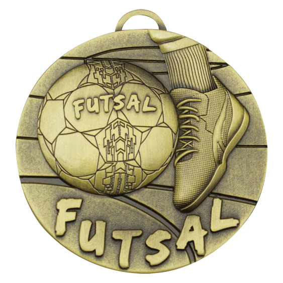 This antique gold futsal medal features a bold, sport specific design showcasing a detailed futsal ball and shoe motif. Its textured finish and strong visual depth make it an excellent choice for clubs, schools, and competition events seeking an affordable yet impressive award. Custom engraving is included, allowing you to personalise each medal with player names, event titles, or team achievements. Ribbons are available in a wide range of colours to suit your club or organisation.