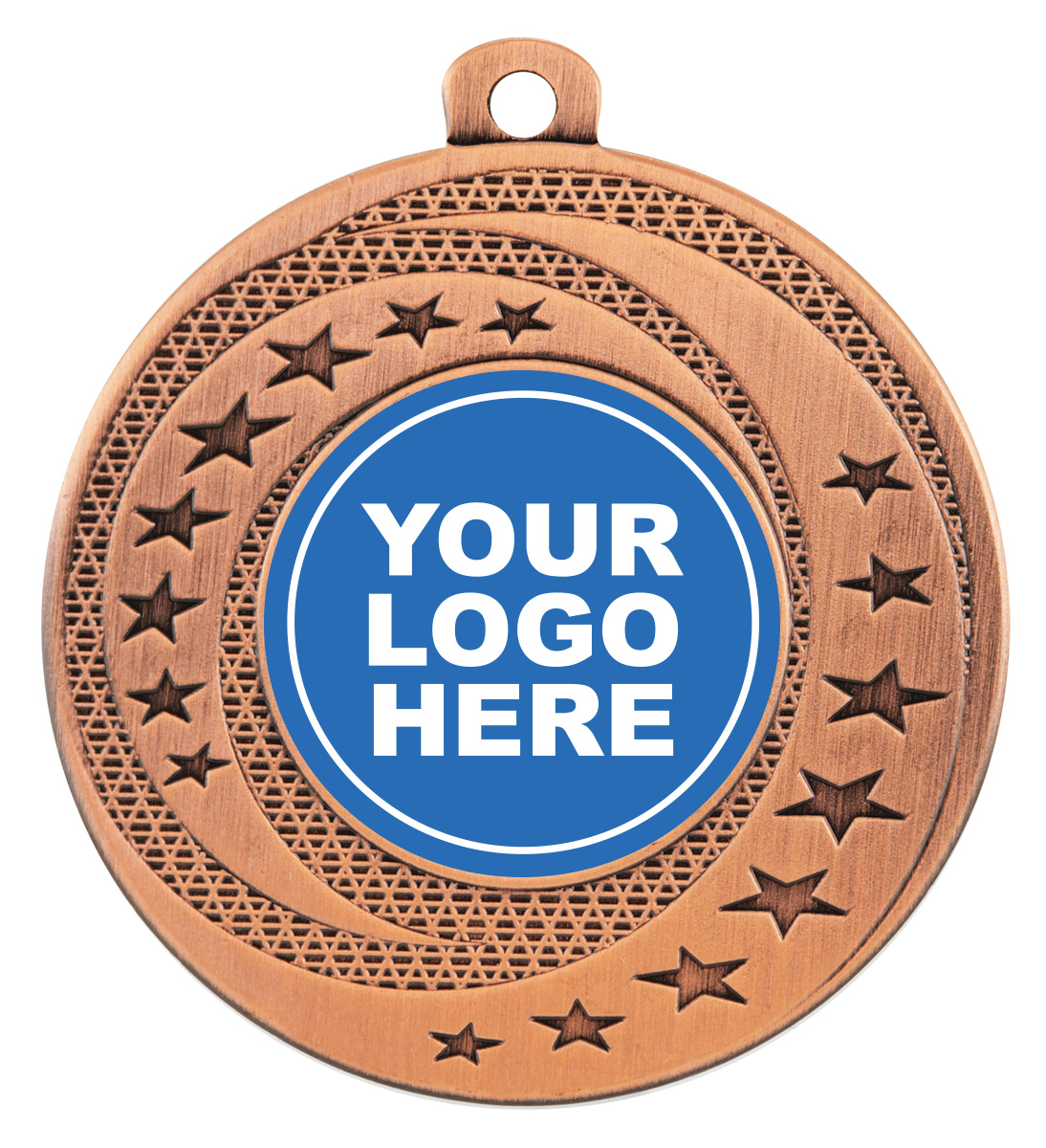 Crafted in durable metal and offered in bronze, silver, and gold, this medal features a refined circular shape highlighted by an elegant star pattern. The 50mm design includes a 25mm centre space for customisation or logo display, making it ideal for recognising outstanding performance across general sports events while maintaining a professional, memorable appearance.