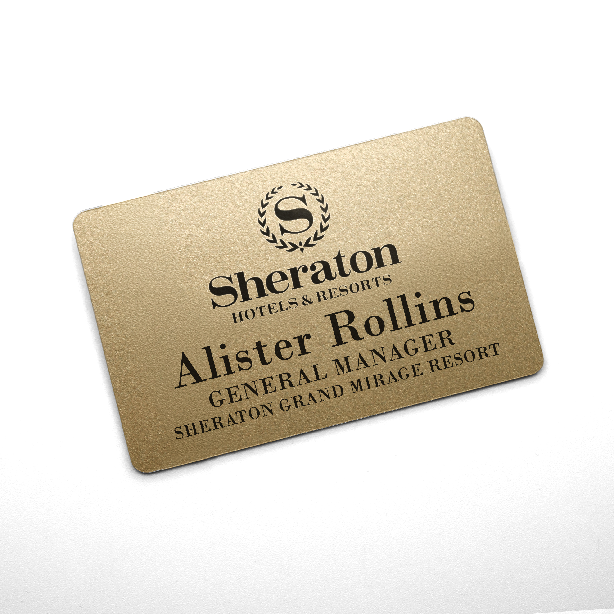 The NBI Name Badge, available in gold or silver backgrounds, delivers a polished, professional look with its full-colour printed design on a durable plastic base.