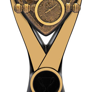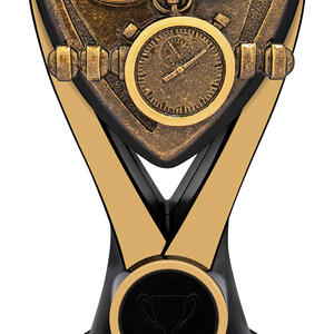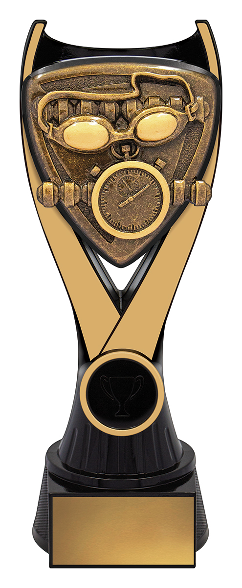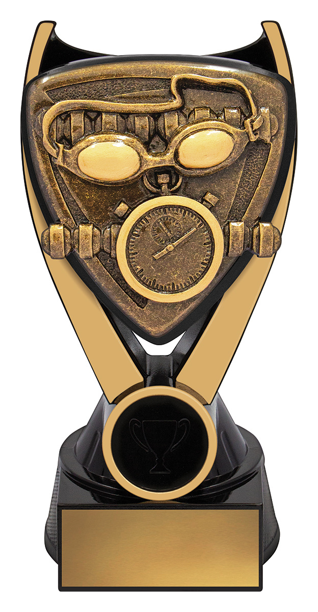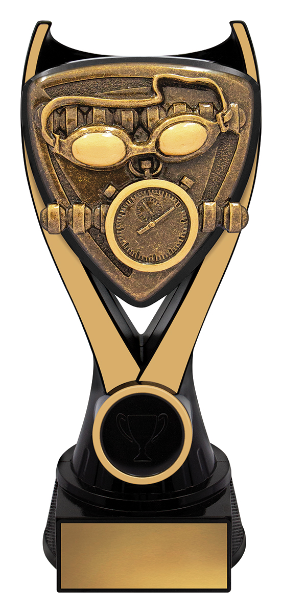 Crafted for distinction, this swimming trophy stands out with its triangular shield design in striking gold and black tones. Featuring detailed depictions of a stopwatch and goggles, it symbolises precision and dedication in the pool. The Nova Series is a trusted choice for swimming trophies, bringing quality and a celebratory touch to every achievement.