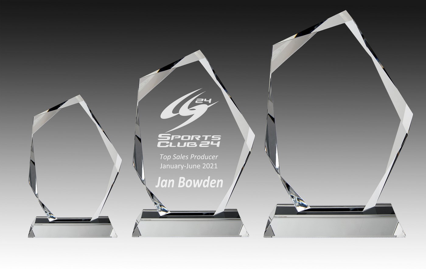 We use Superior Sandblast engraving or high-resolution full-colour printing to achieve striking results on our glass awards and trophies.