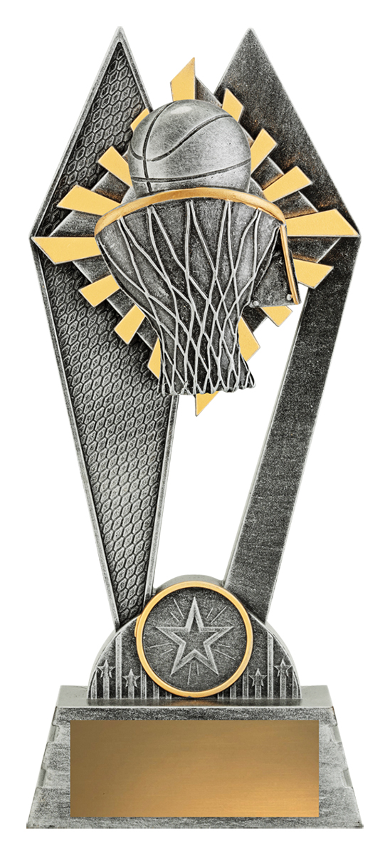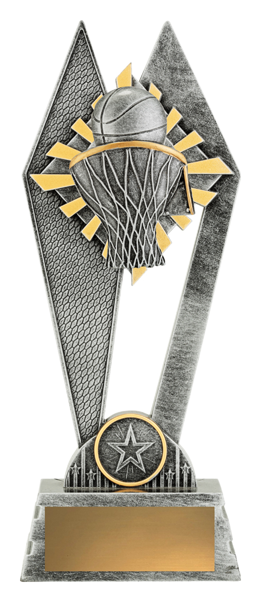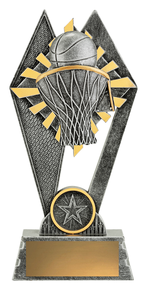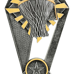 Celebrate outstanding performance with this sophisticated basketball trophy, crafted in striking silver and gold. Featuring a dynamic basketball and hoop motif, this award symbolises achievement and dedication in the game. The design is completed with a star emblem, making it a refined choice among basketball trophies for honouring players and teams.