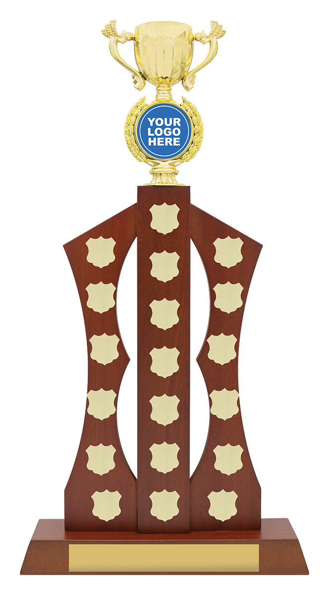 This trophy can be created for any sport or genre. The price includes title plate imprint.