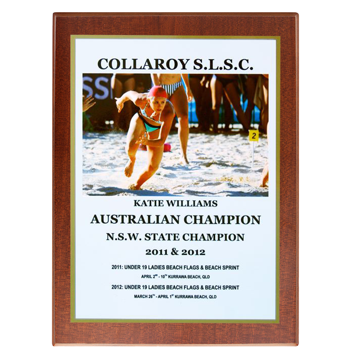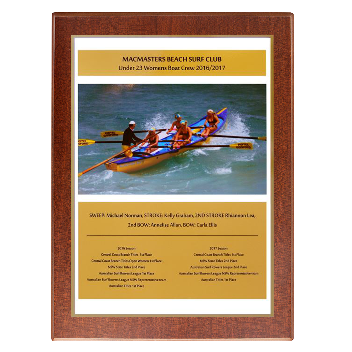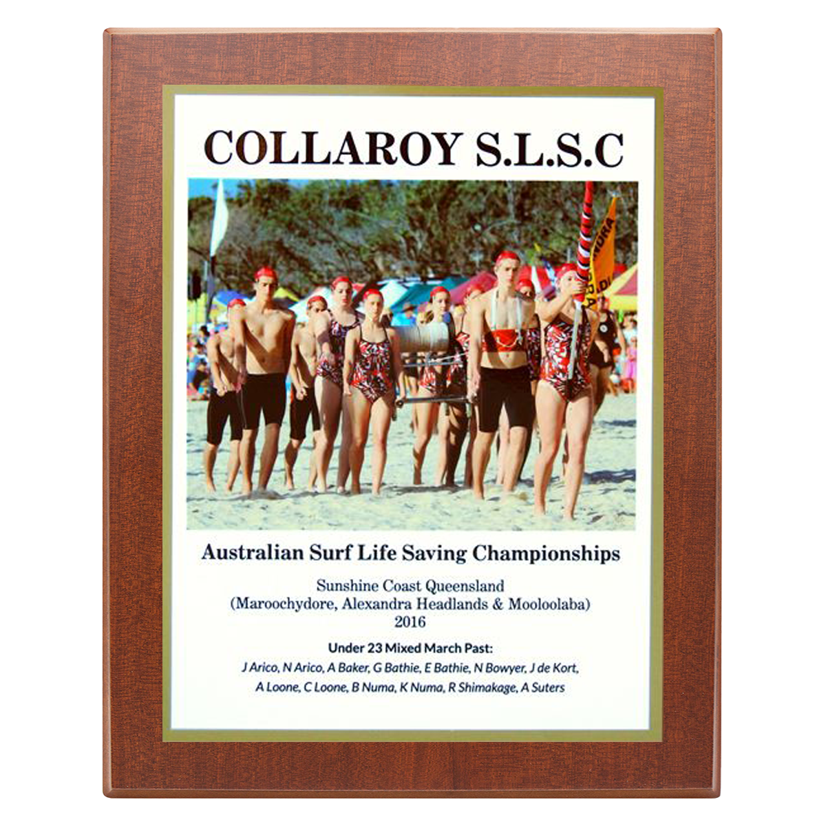 The original Perma-Plaque, used by surf lifesaving clubs Australia-wide, involved laminating a photograph and description onto a timber base. Today, that traditional method has evolved into a modern-day production process. Modern Perma Plaques use high-definition sublimation printing, where the image and text are permanently infused into a specialised metal surface, which is then mounted onto a quality timber backing.