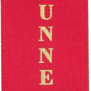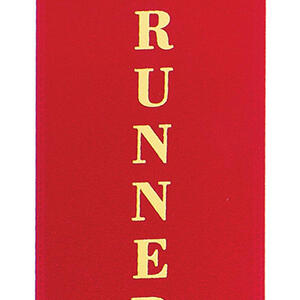 This runner up award ribbon is crafted from quality red satin and finished with a striking gold laurel wreath design. The rectangular shape, accented by a distinctive zigzag top edge, gives it a classic and celebratory look. A reliable choice among award ribbons, it marks achievement with elegance and clarity for any occasion.