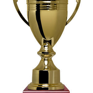 The perpetual cup trophy features a beautifully crafted golden metal cup with traditional handles, elegantly mounted on a timber base. Designed for enduring recognition, its substantial presence suits both sports competitions and corporate milestones. This trophy can be personalised, making it a trusted and memorable symbol of achievement for recurring winners.