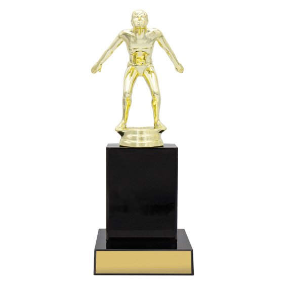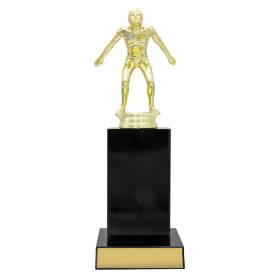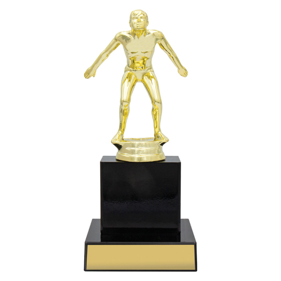 This gold surf lifesaving trophy showcases a detailed swimmer in a surf-ready stance. Set on a black marble base, itÂ’s ideal for lifesaving clubs and surf competitions. Supplied with an engraving plate.