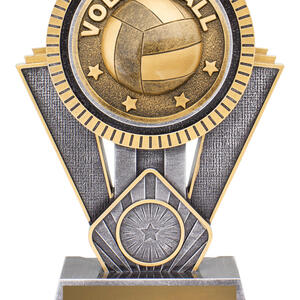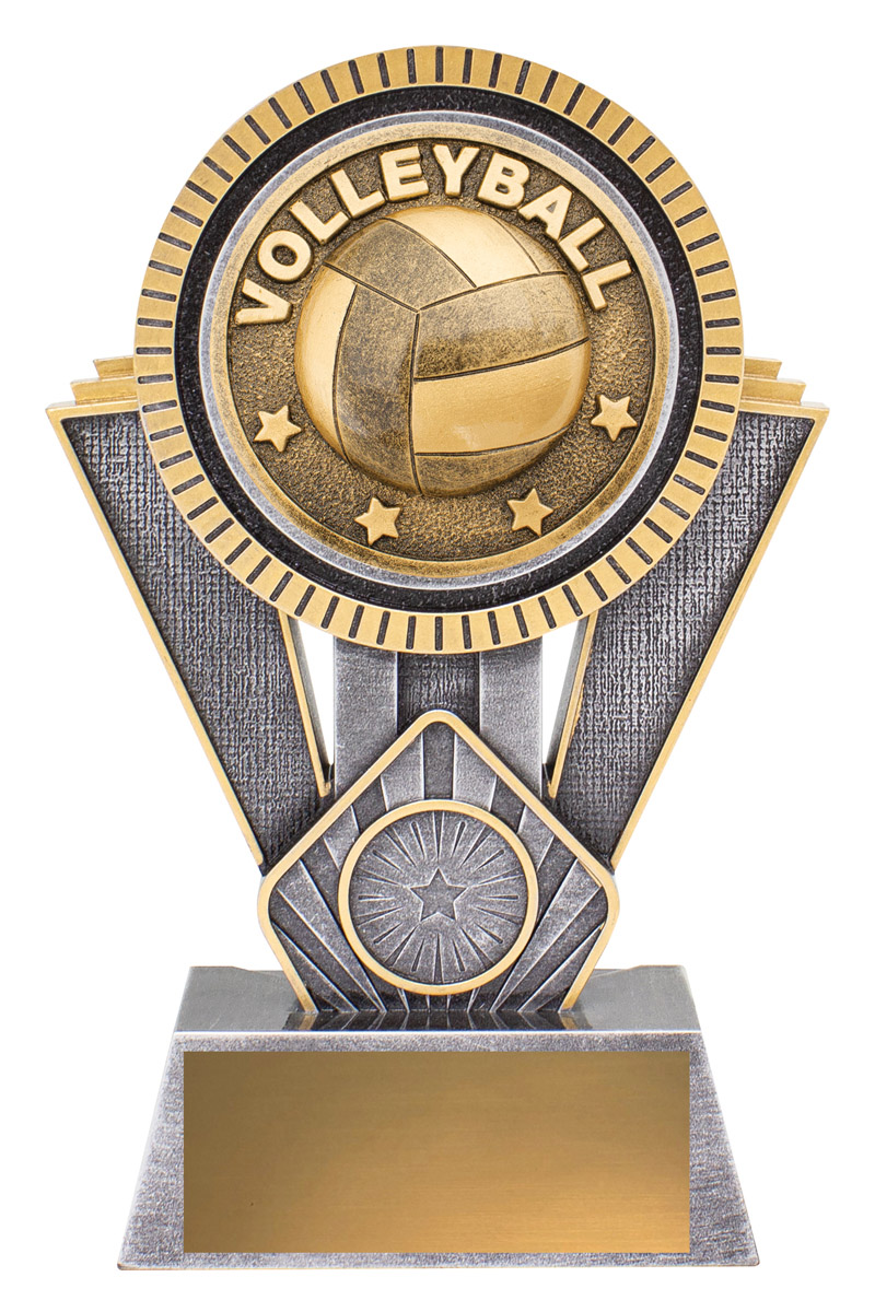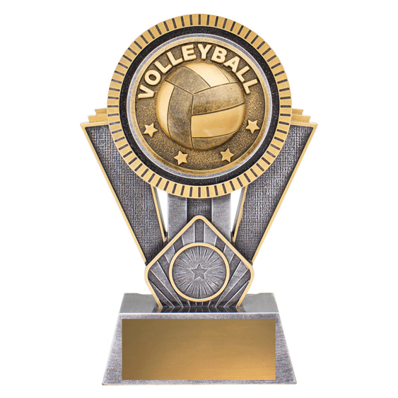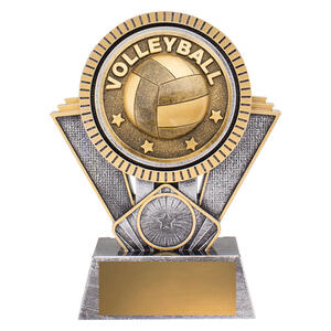 This volleyball trophy features a bold raised ball design within a gold and silver circular pattern. Made from quality resin, itÂ’s perfect for volleyball tournaments or club presentations. Supplied with engraving plate.