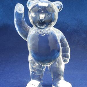 A charming solid crystal teddy bear figurine, beautifully hand-sculpted with smooth polished detailing.