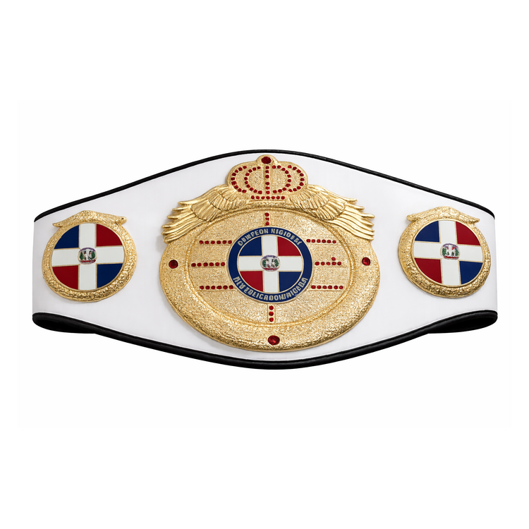 Championship Title Belt – created to honour champions with authority and distinction. Also known as a Title Belt, this striking piece features three prominent decorative plate areas, including three custom-printable round discs delivering a bold, traditional championship appearance.