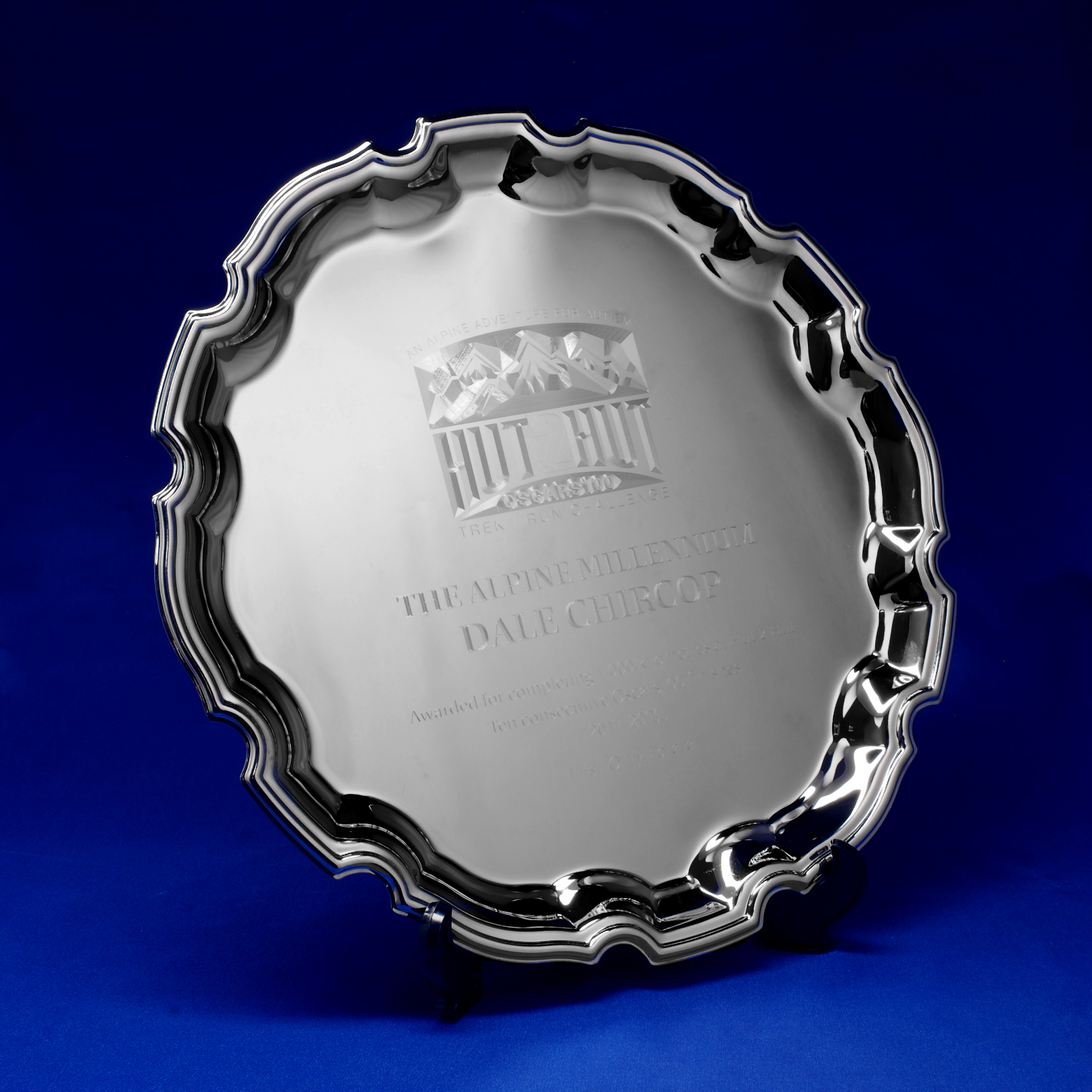 This elegant, engraved silver tray is crafted from quality metal and features a timeless, round silhouette with delicately scalloped edges. Its lustrous silver finish and graceful contours create a sophisticated presentation piece, ideal for commemorating milestones, achievements, or special occasions. The Randwick Tray offers a memorable and durable option for meaningful recognition.