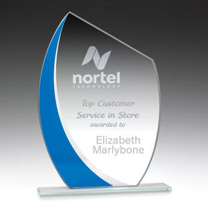 Glass trophies typically have a very slight green tinge, which can subtly affect the appearance of colour printing. In contrast, crystal trophies are completely clear.