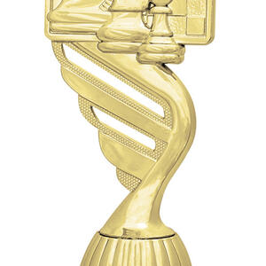 Sleek and distinguished, this chess trophy features a striking spiral base crafted from plastic and marble, finished in classic gold and black. The top showcases detailed chess pieces and a chessboard design, creating a memorable tribute to strategic excellence. Ideal for recognising achievement in chess, it offers an elegant symbol of skill and dedication.