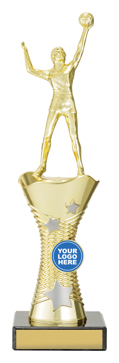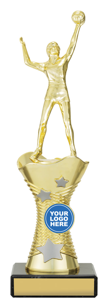 Celebrate volleyball achievement with this refined volleyball trophy from the Wayfinder Series. The design features a detailed figurine of a volleyball player in action, highlighted by a sophisticated blend of gold, black, and silver. Crafted with a sturdy cylindrical base and a customisable 25mm centre, it offers a memorable tribute to performance and teamwork.