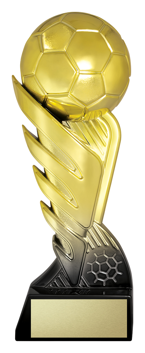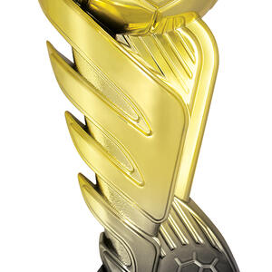 Celebrate achievement on the pitch with this football league trophy, crafted in striking gold and black metallic tones. The contemporary design features a detailed football at the summit, balanced on a sleek, modern base that commands attention.