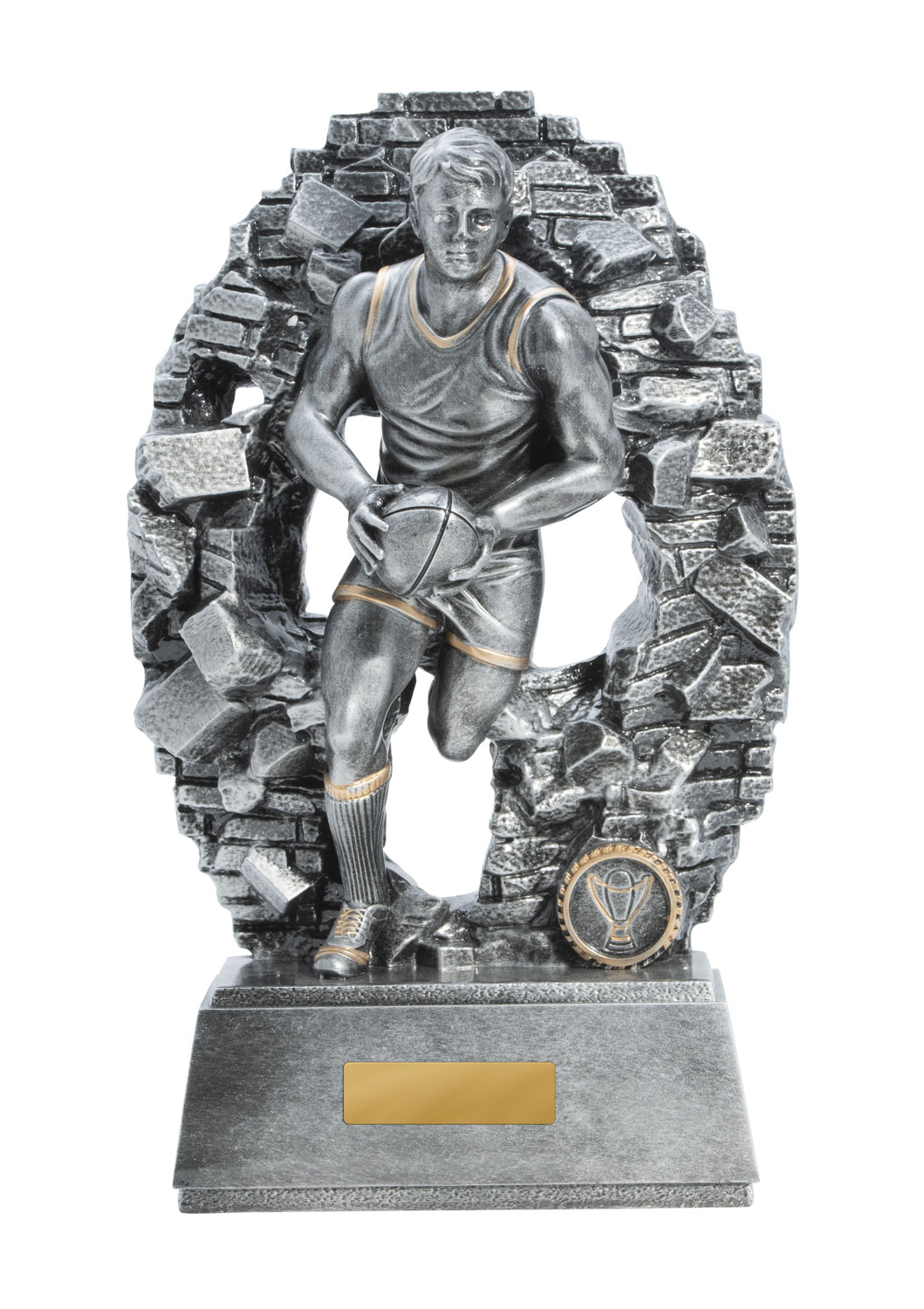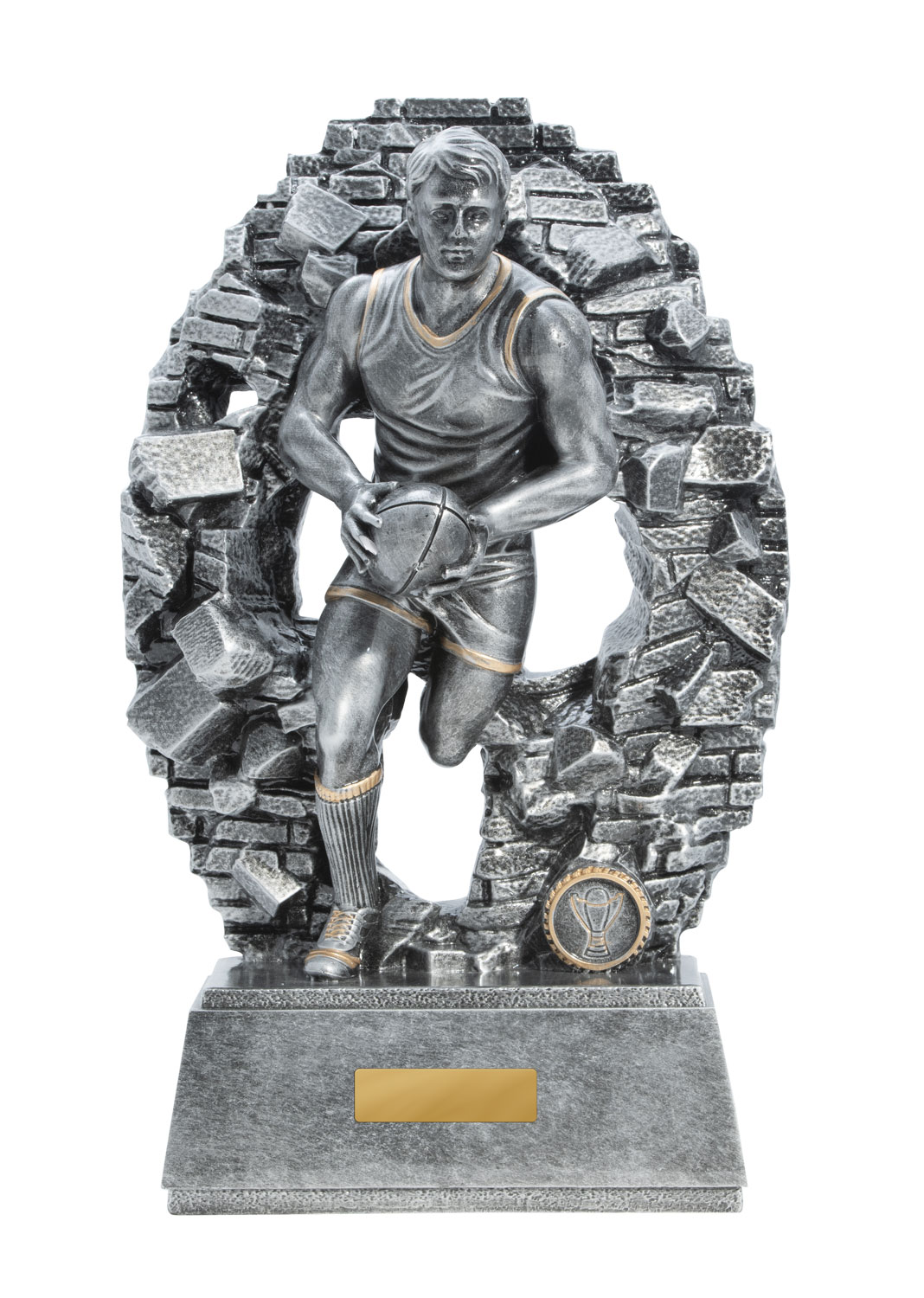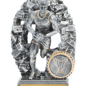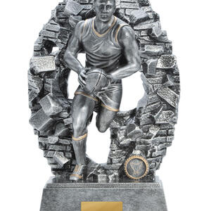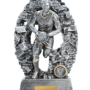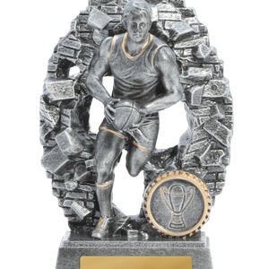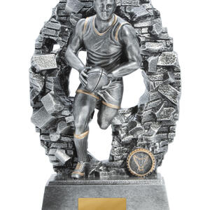 Celebrate outstanding achievement in Aussie Rules with a trophy that embodies both energy and tradition. Crafted from robust resin with an antique silver finish, this afl trophy features a dynamic male player in action, captured against a textured oval backdrop accented in gold.