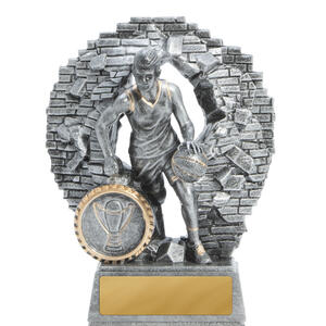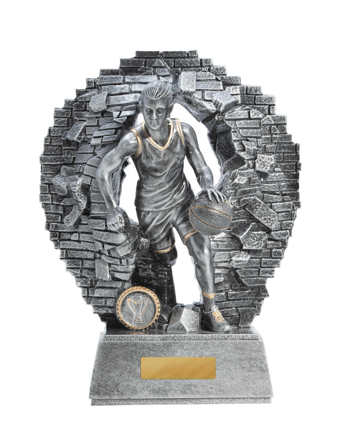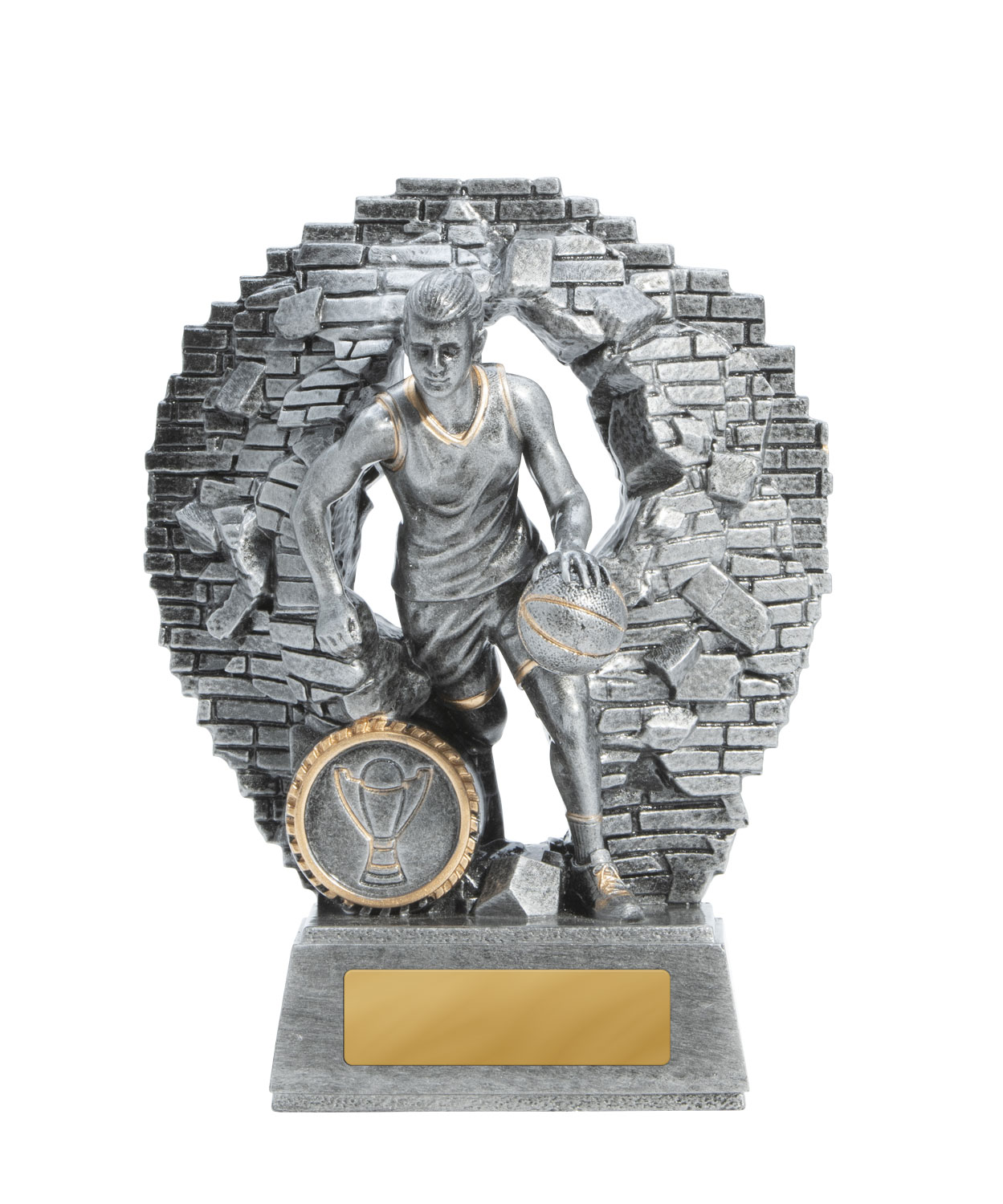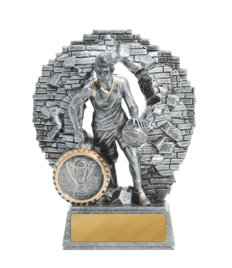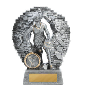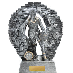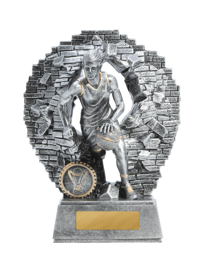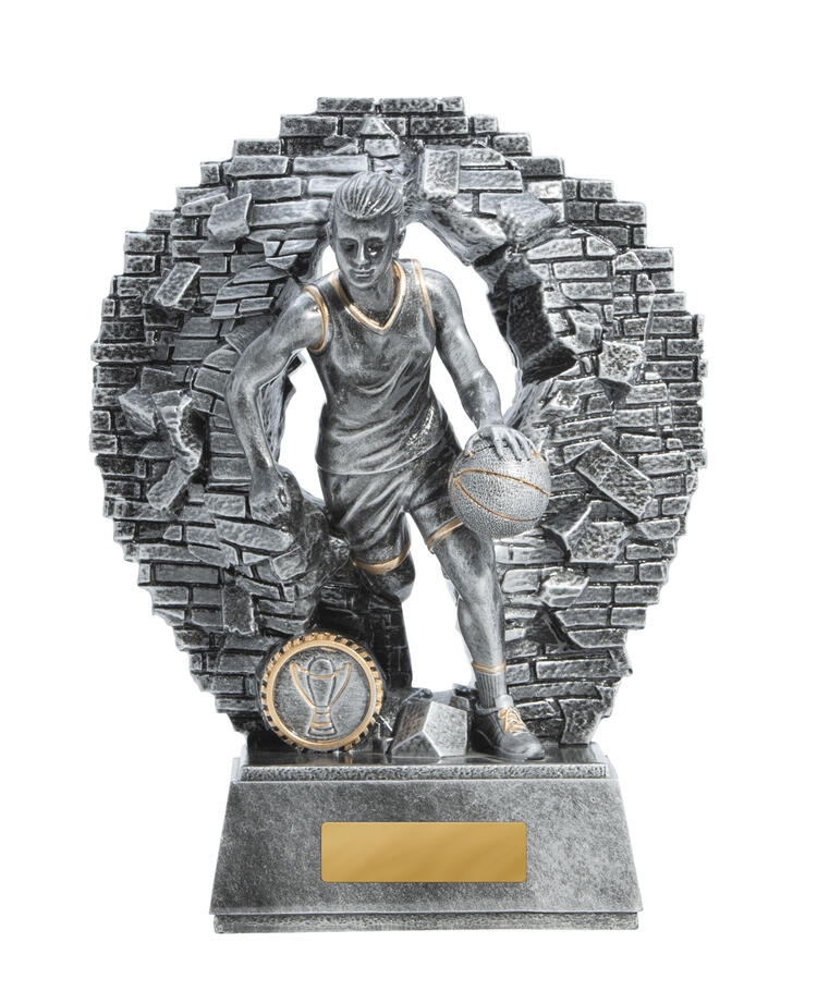 Celebrate progress and achievement with this female basketball trophy, designed to honour determination and teamwork. Crafted in elegant silver and gold resin, the trophy features a striking depiction of a female player breaking through a brick wall, symbolising resilience in the game.