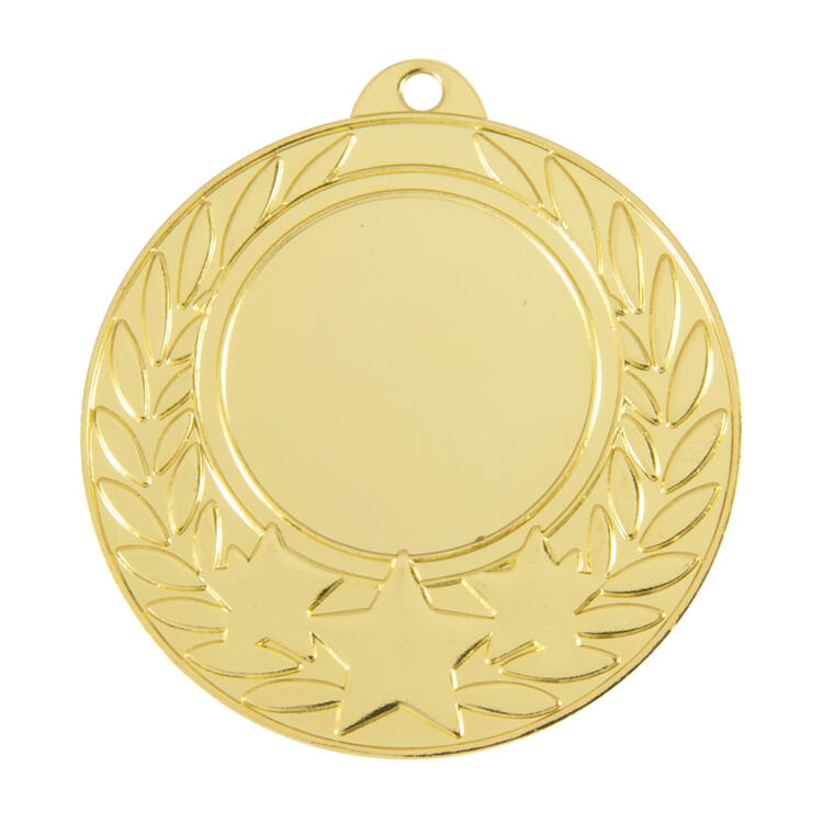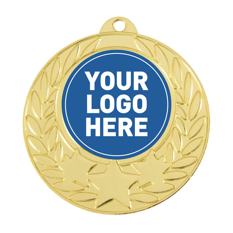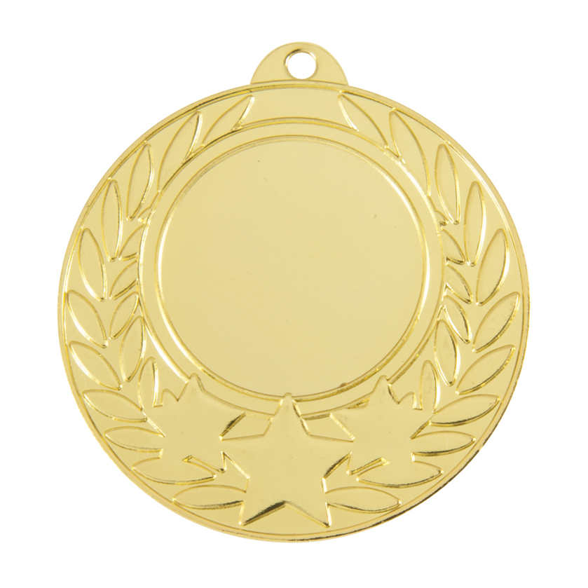 This circular metal medal offers a refined celebration of achievement, featuring a laurel wreath and star accents. Available in gold, silver, and bronze finishes, its standout design is suitable for a variety of general sports awards. The 25mm central area is customisable, making it a versatile choice for those seeking professional, memorable sports medals.