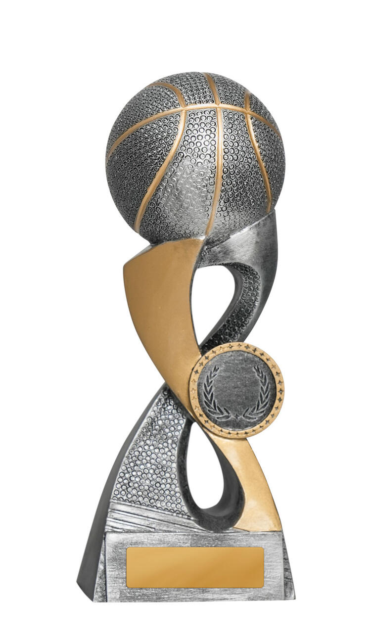 This expertly crafted trophy is designed to honour success on the basketball court, featuring a detailed basketball design framed by a laurel wreath emblem. Its compact construction, provides a durable and elegant way to recognise standout achievement.