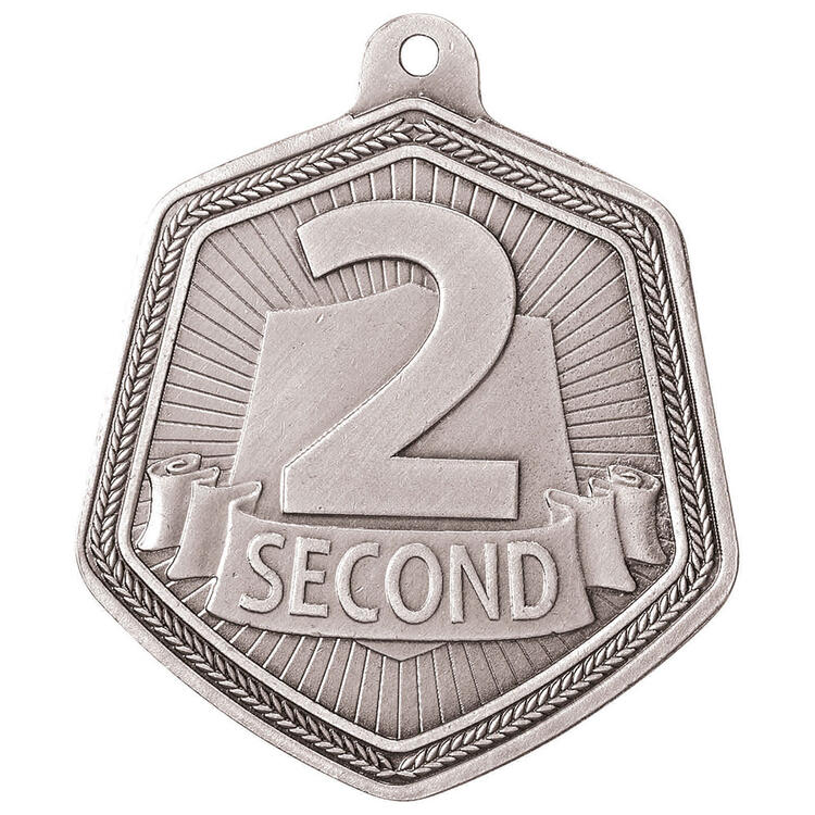 Celebrate success with this Falcon Series second place medal, crafted in metal and finished in striking silver. Its contemporary hexagonal shape and bold, engraved number '2' with the word 'Second' deliver a clear statement of achievement. Designed for general recognition.