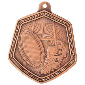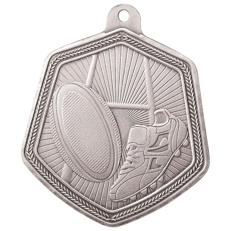 Celebrate rugby achievement with these pentagonal medals, finished in your choice of gold, silver, or bronze. Each award features a detailed design with a rugby ball, cleated shoe, and goalposts, creating a strong connection to the sport.