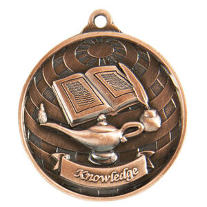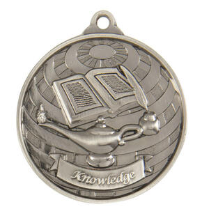 Crafted in metal with a distinguished 50mm circular form, this education medal honours academic accomplishment with style. The medal features an open book, quill, and lamp motif with the word 'Knowledge' on a banner, symbolising dedication to learning. Available in gold, silver, and bronze finishes, it is an elegant choice for celebrating educational milestones.