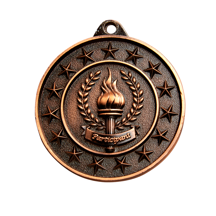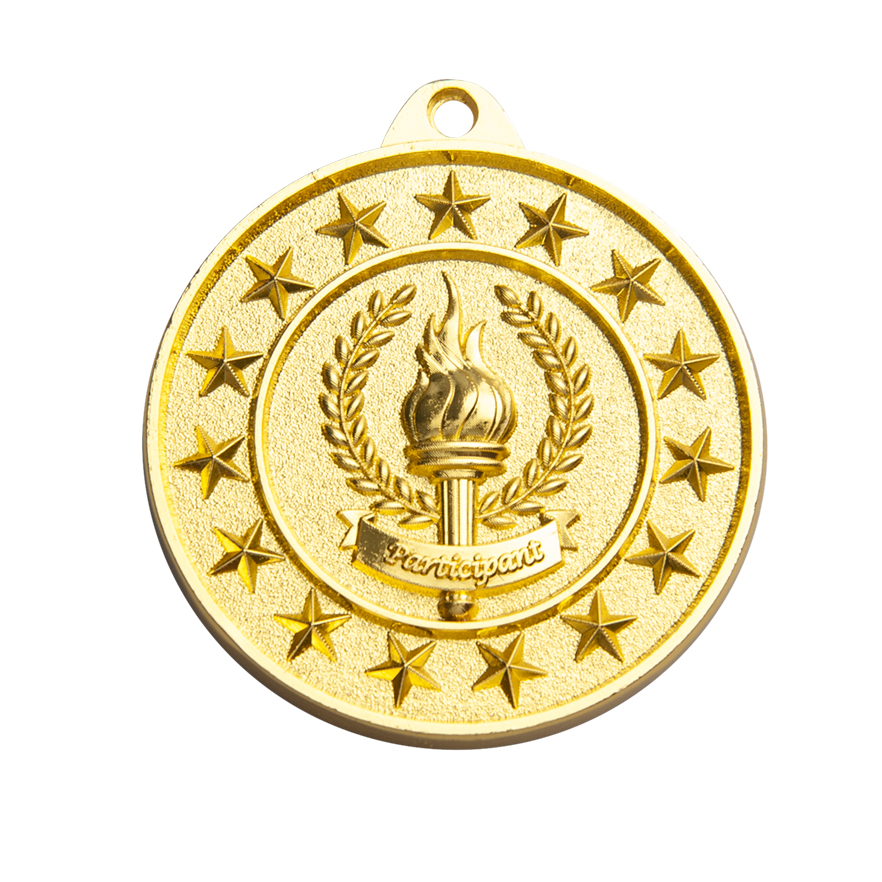 Crafted from durable metal in a classic circular form, this participant medal recognises involvement across general sports events. Available in gold, silver, and bronze finishes, its design features a torch and laurel motif for a distinguished touch. The medal offers a professional and elegant way to celebrate participation and achievement in any sporting environment.