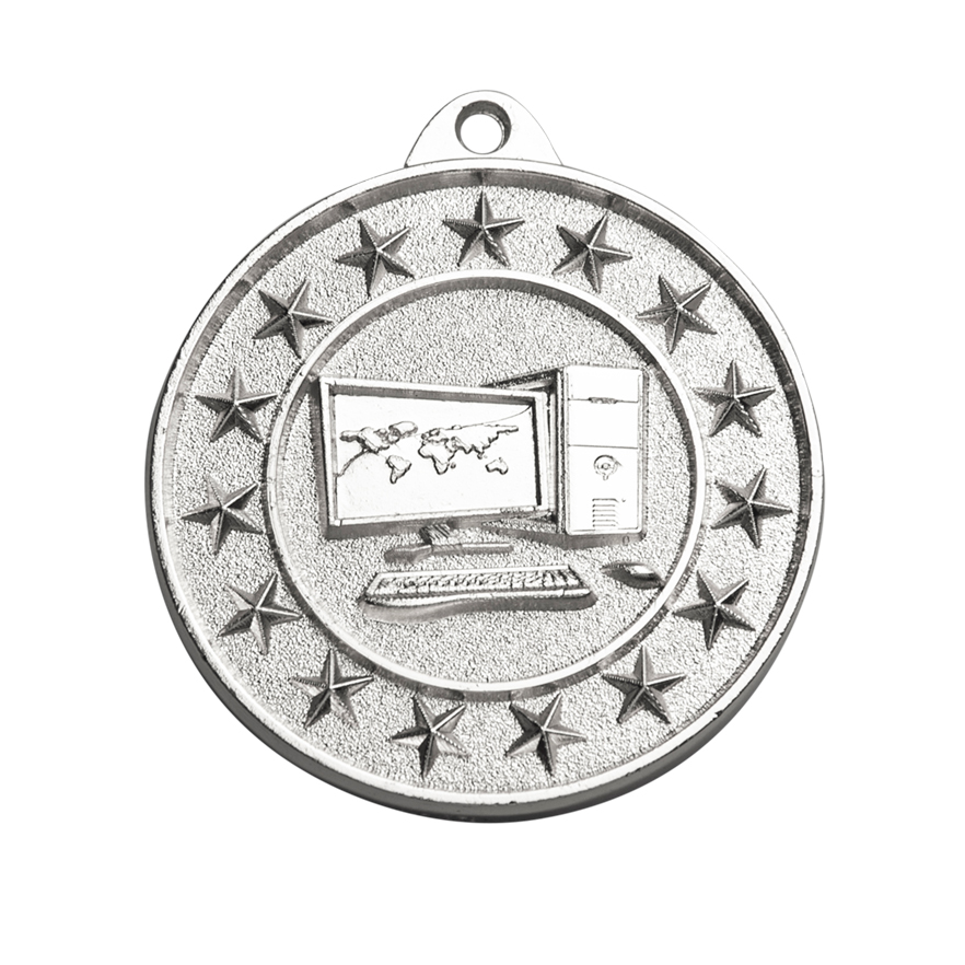 Crafted in metal and finished in your choice of silver, gold, or bronze, this 50mm medal is designed to honour excellence in computing. The front features a detailed computer with monitor, keyboard, and tower, highlighted by a dynamic array of shooting stars. This computer achievement medal is a trusted solution for recognising standout performance in technology related fields.
