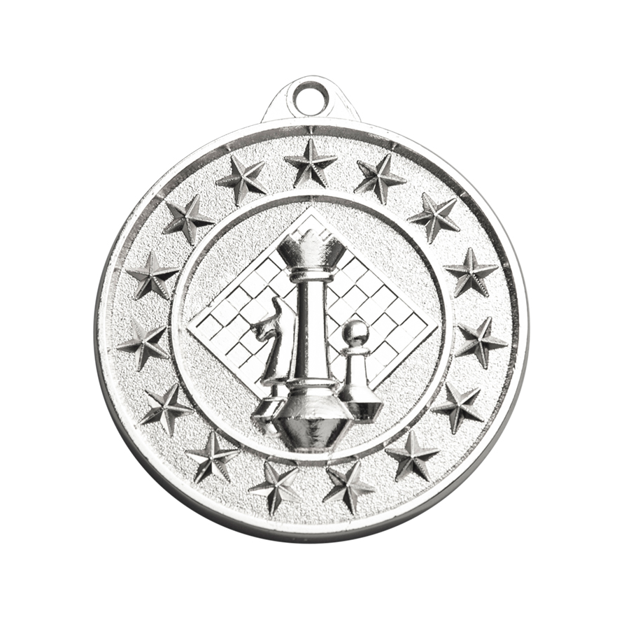 Celebrate strategy and skill with this chess medal, designed for standout recognition in any tournament or academic event. Available in gold, silver, and bronze finishes, it showcases the king, knight, and pawn against a detailed chessboard, all framed by a constellation of stars. An elegant and durable choice for presenting chess medals to top performers.