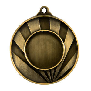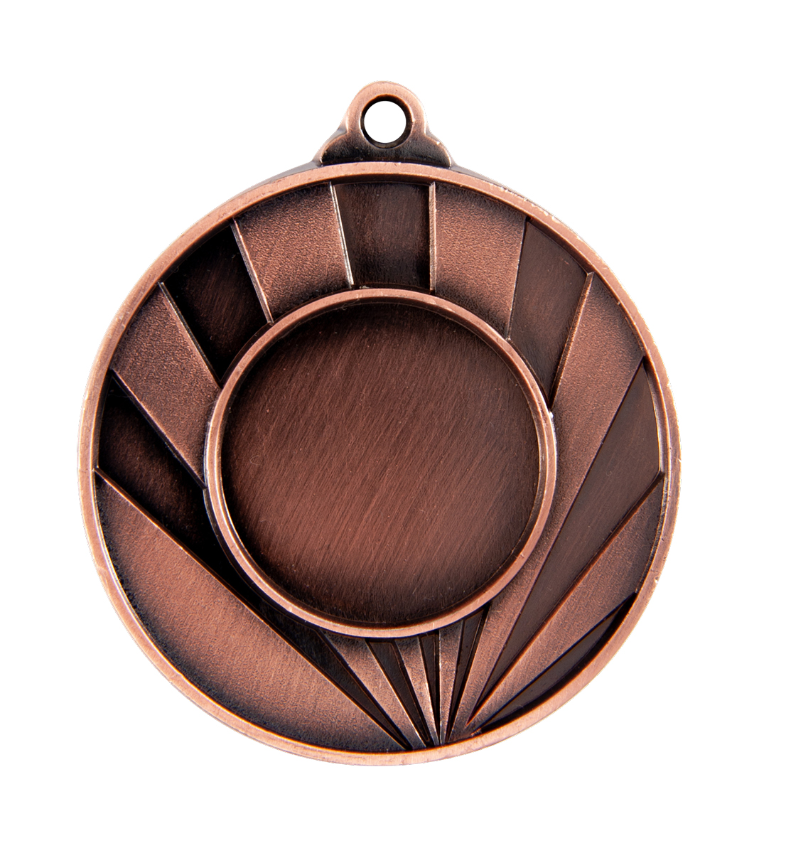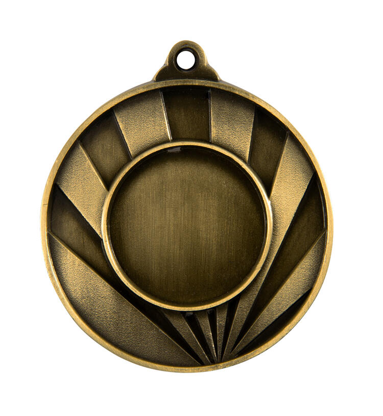This versatile sports medal features a circular design with bold geometric patterns and is available in gold, silver and bronze finishes. Its thick edge offers a substantial, durable feel, while the 25mm centre provides space for customisation. With a convenient loop for ribbon attachment and a back panel for engraving, it's ideally suited for any sports presentations.