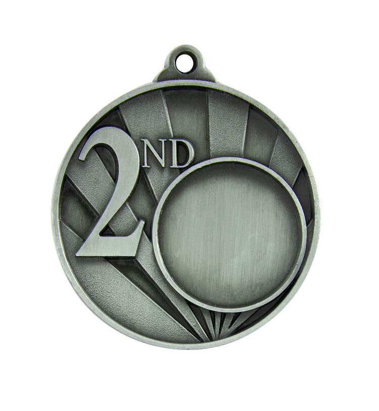 Celebrate outstanding achievement with this second place medal, crafted in silver toned metal for a professional finish. Its 50mm design features a prominent ‘2nd' emblem and a 25mm blank centre, offering space for custom logos. The elegant loop at the top makes it a versatile choice for recognising excellence across a range of sports and events.