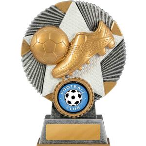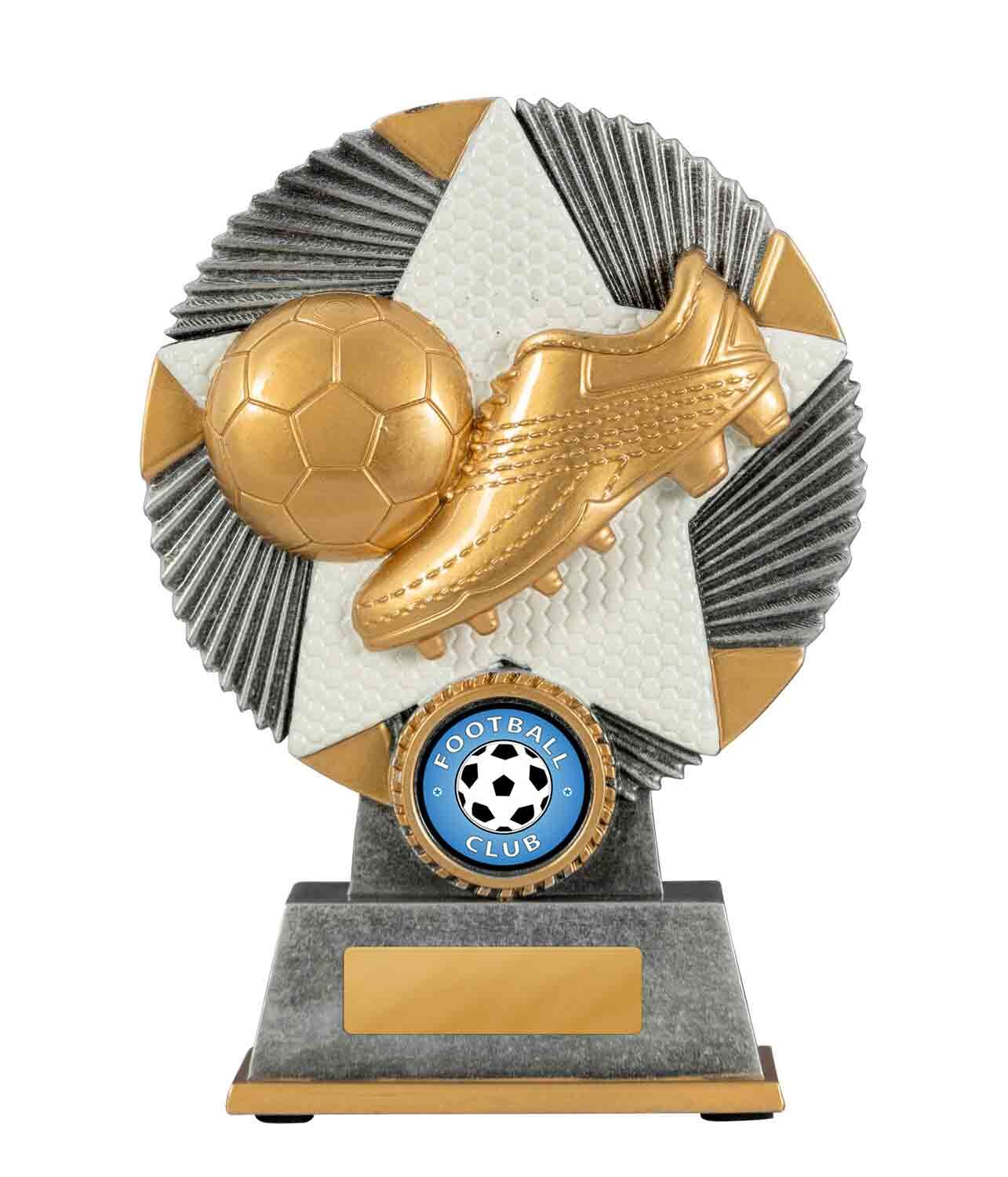 Showcasing a bold football motif, this Alpha Series award features a distinctive 25mm centre ideal for custom logo placement. Designed for soccer trophies presentations at club, school, or community level, its professional appearance and exclusive detail create a lasting symbol of achievement.