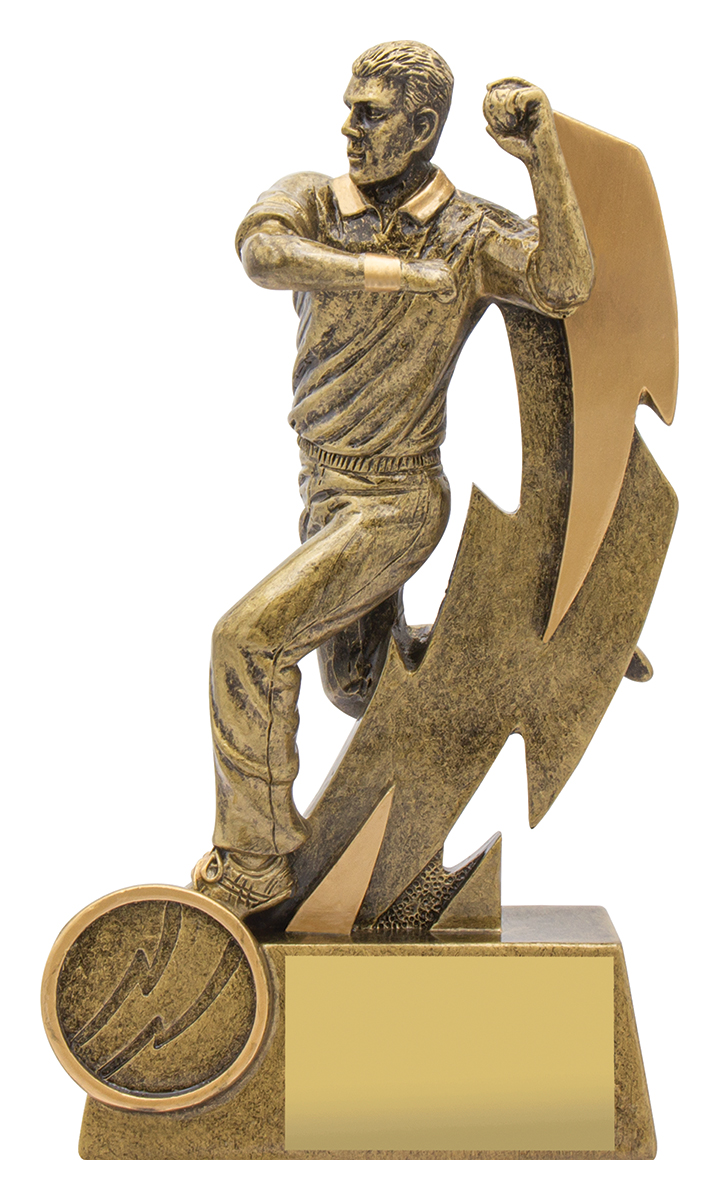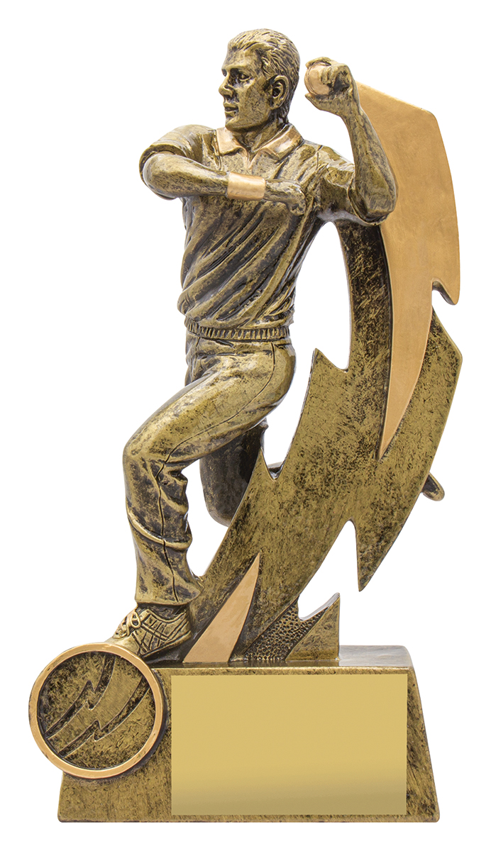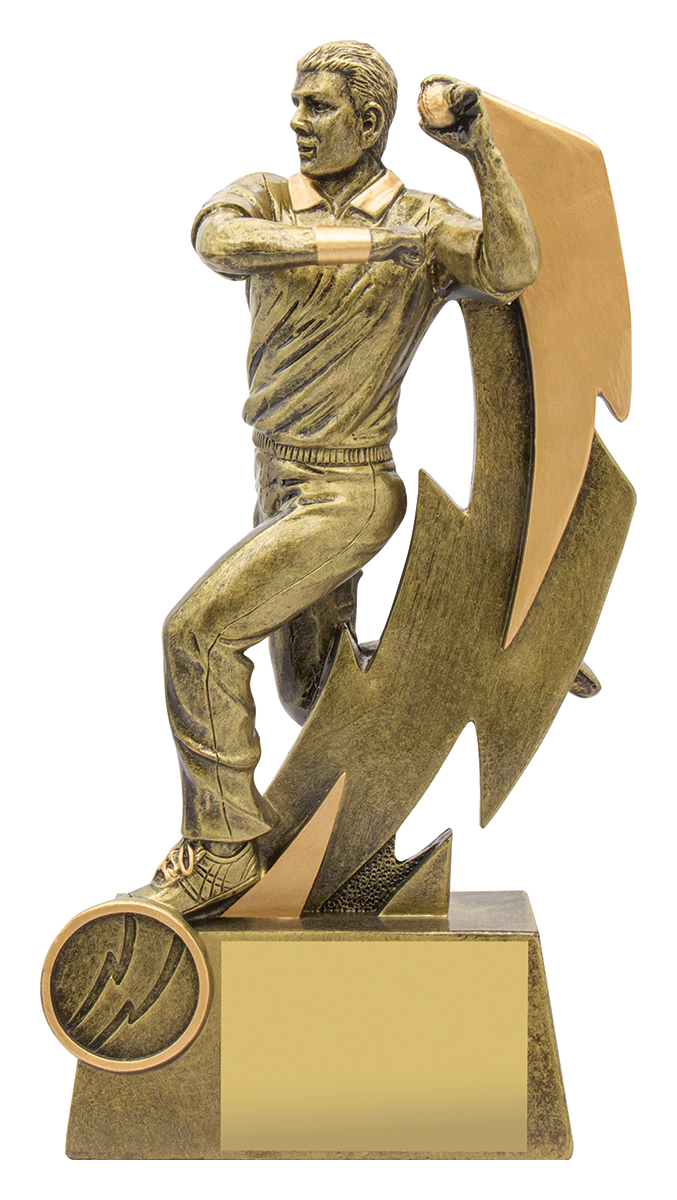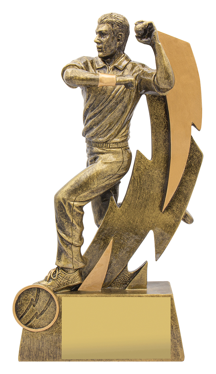 Celebrate excellence on the pitch with this cricket trophy, featuring a bowler captured mid action in a striking gold metallic finish. Crafted as part of the Shazam Series, its dynamic design and professional detail make it a standout recognition piece. Available in five sizes and both male and female versions, this award offers a memorable way to honour achievement in cricket.
