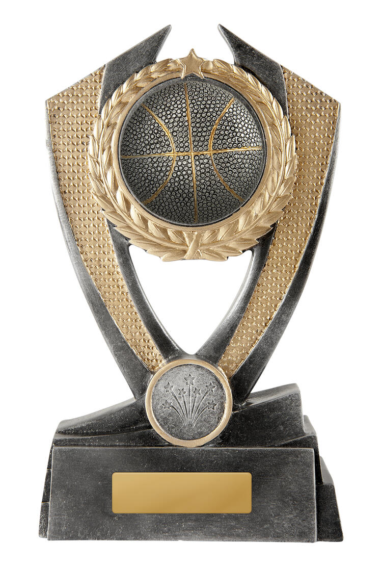 Celebrate basketball achievement with a basketball trophy that blends refined style and timeless symbolism. Crafted from durable resin, its shield like design features a circular basketball motif framed by a laurel wreath and accented with a star emblem.